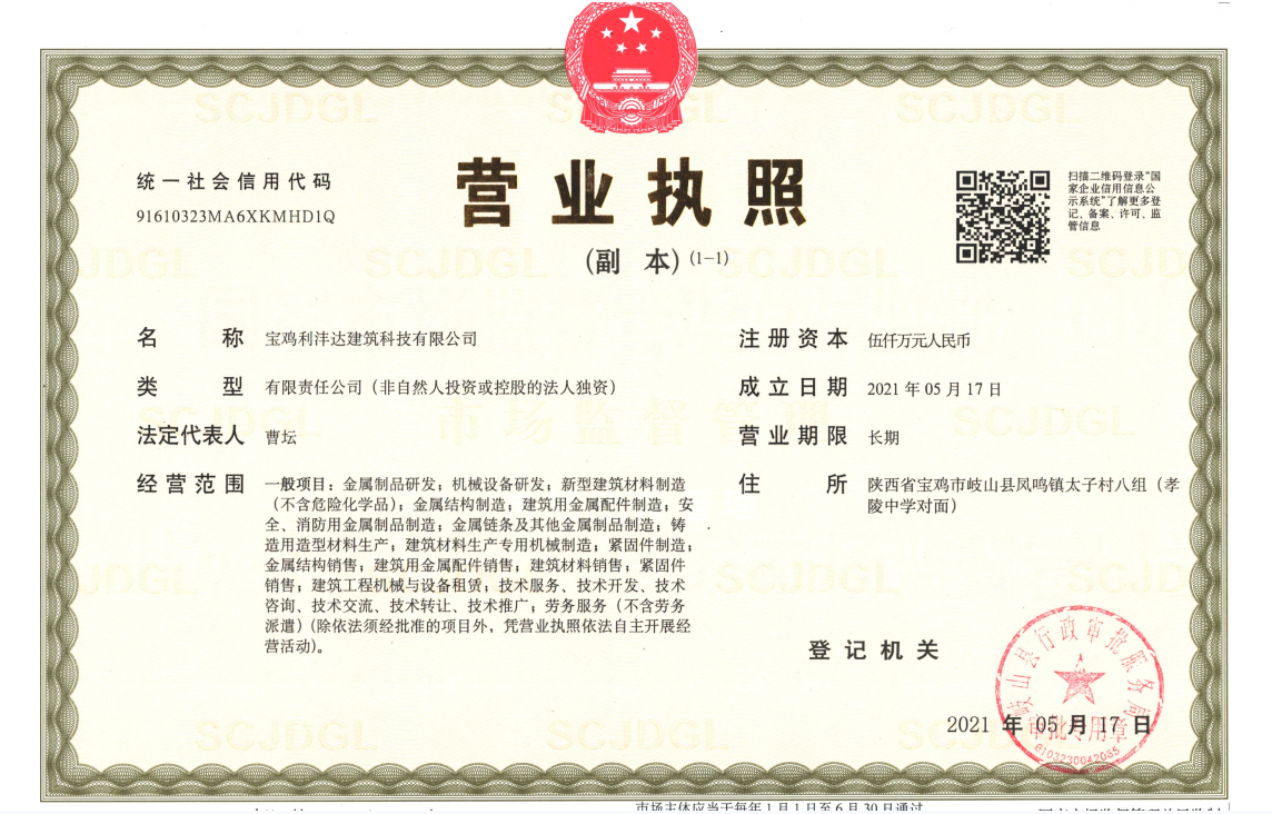 宝鸡利沣达建筑科技有限公司是宝鸡市2022年招商引资重点项目,被评为宝鸡市2022年招引“大项目”,宝鸡市市长及岐山县县长等领导班子多次莅临现场指导项目建设工作,确保宝鸡利沣达公司新型环保金属材料生产基地的建设有序推进;宝鸡利沣达公司也将不负众望,为努力推动区域经济发展做出更大的贡献。